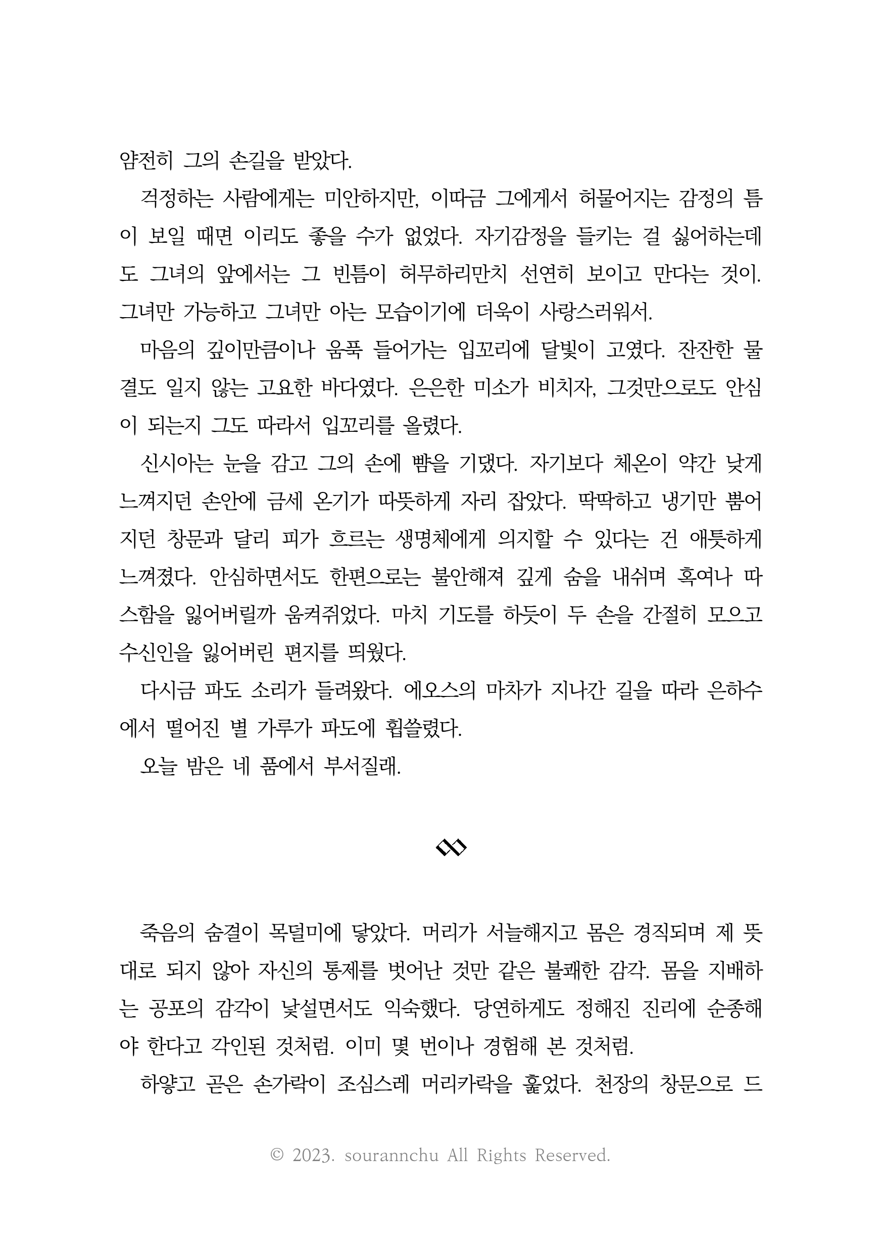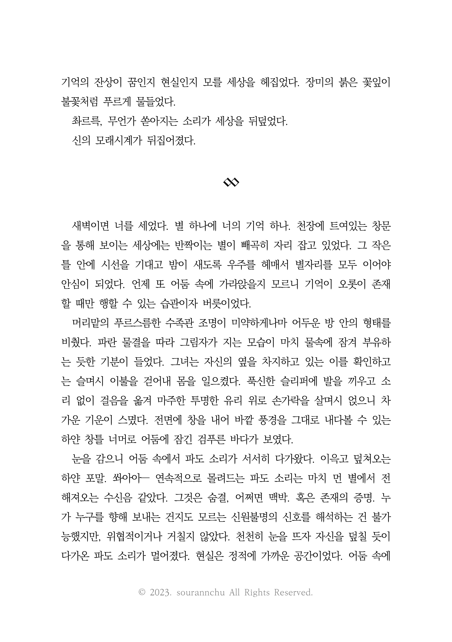 여담으로 환채에 투자 된 자금에는 소우란의 개인 사비도 포함되어 있답니다. 제가 잠시 방심한 사이에 선물을 주고 간 바보 아기 여우⋅⋅⋅ 부인으로서 남편 기 살려주러 출장을 간건데 오히려 저를 든든하게 뒤받쳐주는 제 편이 되어주는 사랑스러운 사람이 있어 정말로 즐거웠고 기뻤어요.